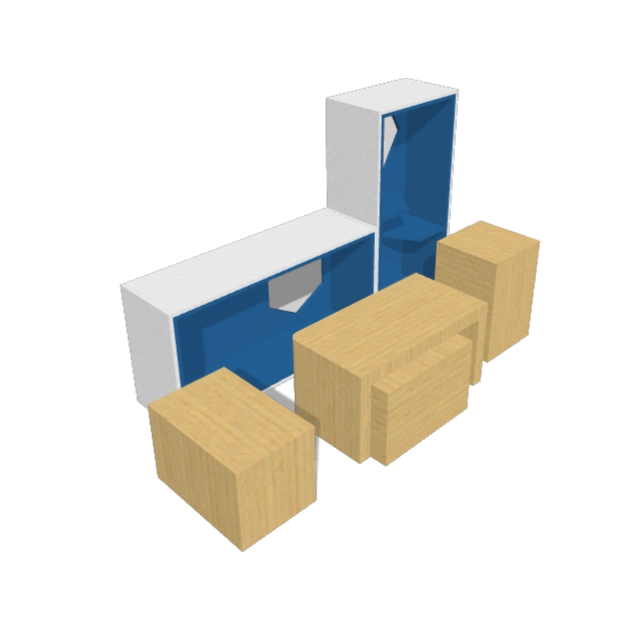 Modern blue desk with modern wood bench.