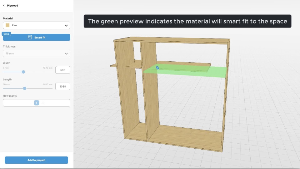 With this update we've added intelligence to size material automatically based on its position and surrounding material. It means you don't need to worry about measurements for your material, just drag it where you want and MakeByMe will take care of it for you.