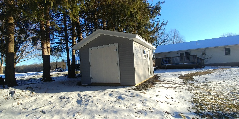 Some final pics. Double doors are primed for winter, think I'll paint them gray to match the vinyl in the spring. Would love to see other shed models in the comments below!!