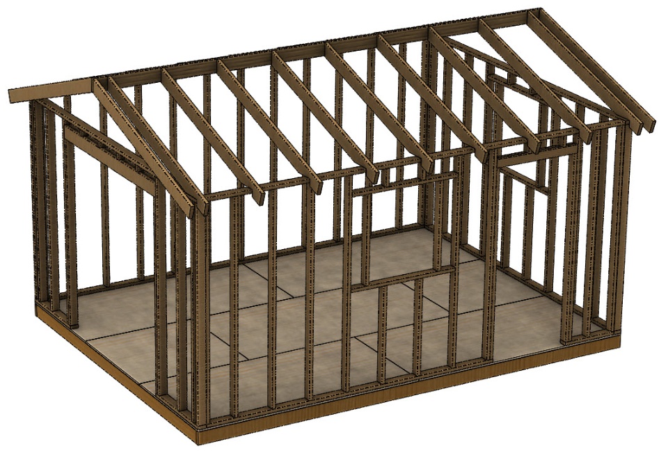 Update 2 - I keep playing with different methods to double up on certain lumber like the headers over the doors or the caps along the tops of the walls which I don't have in the image above. It seems like adding extra sketch lines would make structure selection easier but the sketch more convoluted? Copy bodies is what I've been using. The trim/extend feature only works on structure bodies but luckily you can select faces too. Just like regular modeling...it's all in the planning! I'm going to build the double doors so I'll model up some hinges maybe and get there eventually. I'm not a carpenter so finding it challenging to figure out which direction to go on say using a ridge versus just a truss. Anyone ever model vinyl siding? Interesting profiles for that and do I put that on in the assembly or will it be easier as a multi-body....hmmm....