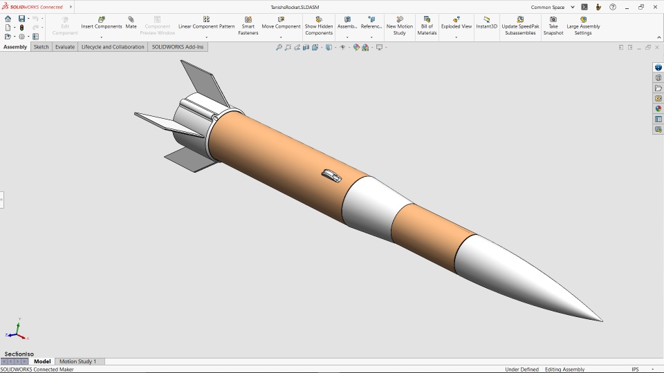 Once Tanish worked things out in OpenRocket, he started modeling all of the rocket pieces in SOLIDWORKS. The body tubes would be purchased cardboard parts, but all the other parts would be 3D printed.
