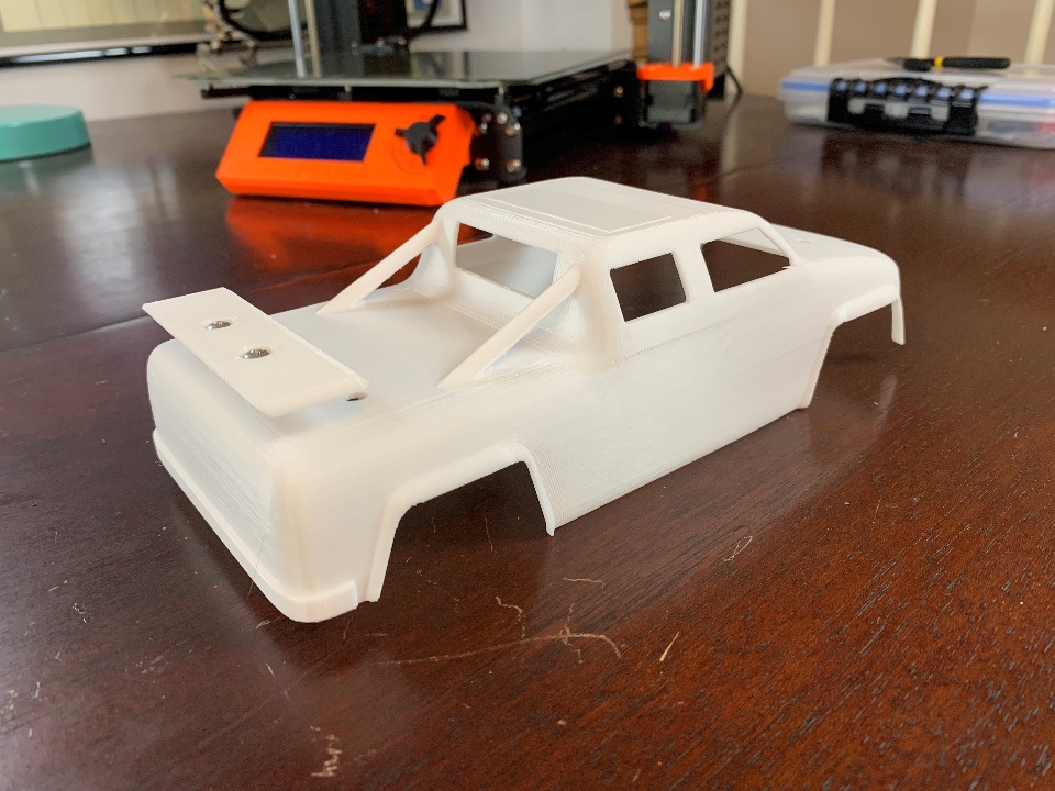 My grandsons love RC cars and trucks. So I asked myself, "Can I design and 3D print a truck body?" Turns out you can! I took a few pictures of one of their trucks, imported the images into xShape and created the body. We made sure the scale and size was correct, and that the holes for the attachment points to the chassis were exactly where they needed to be. Of course, we made changes along the way and ended up printing 3 bodies with different features. The result was a lot of fun and transferring design and manufacturing knowledge to the next generation. It was awesome to hear the boys ask questions like "What if we added Baja styling, and a removable bed and spoilers?" Then return to the design process and make it happen! The 3D Print function in xShape is fantastic! Here are some pictures of the build and a short video of the cars in action.