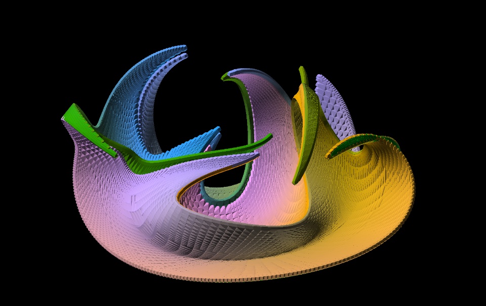 I have been making some mathematically generated 3D sculptures using BIOVIA Pipeline Pilot and various rendering tools. Among the many families of forms generated are several reminiscent of the small 'monsters of the sea' that can be found in the tide pools of San Diego. I think an exciting mobile could be constructed from a set of these.