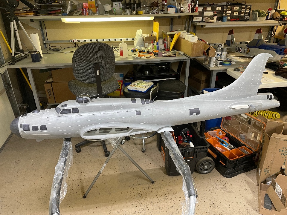 A quick update on the B-17 build. I test fit the landing gear and got her on her feet for the first time to take some pics. I also started painting. I got the base aluminum paint down and colored in the windows using a simple paint pen. I'm very happy with the results so far. Check out the little ball turret that mounts to the belly of the plane. I can see where George Lucas got his inspiration for the Tie Fighter.