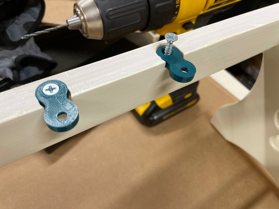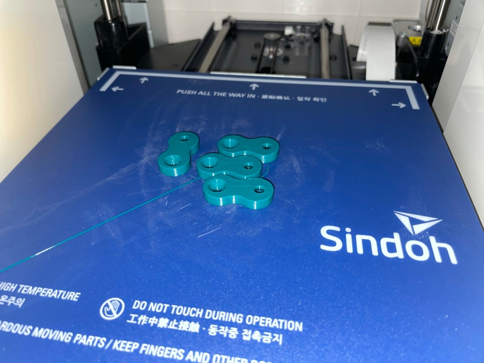 One of the many ways to connect a table top to its leg frame is to use a figure-8 connector. These are typically metal and can be purchased from a variety of locations, but since my design called for something a bit more light-duty, I opted to design a 3D-printable version and print them out on a Sindoh 3D Printer :)