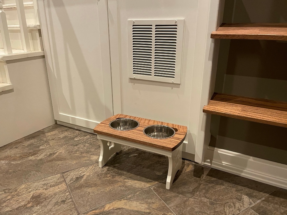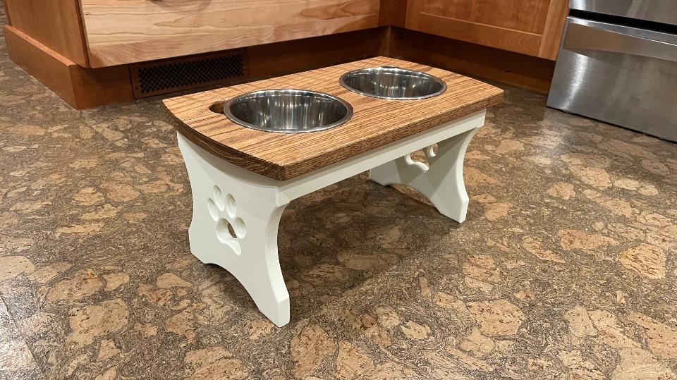Inspired to build a platform to elevate my dog's food and water bowls off the floor, I turned to 3D Creator to model this simple 'breakfast station'!