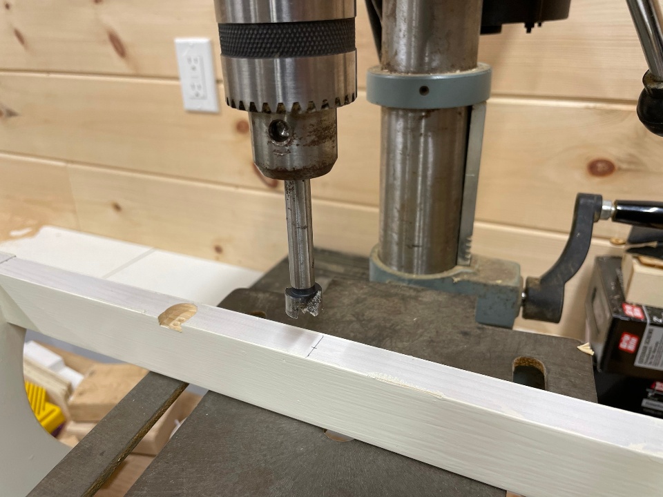 I used my drill press to create the necessary recesses in the stretchers...