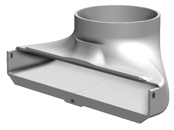 I now have a 6" branch on my dust collection system running to the planer, so I designed a new dust hood that would transition from the rectangular opening on the planer to the 6" diameter of the branch. I started by relocating the circular opening so it pointed straight up instead of out to the side. I did this for several reasons, but mostly because it centrally located the port on the planer. I thought this would allow for much better chip collection vs. the original hood with collection off to one side.I aimed to keep the flow within the hood as smooth as possible while staying as compact as I could. Ultimately, I wanted to print this out on a 3D printer.