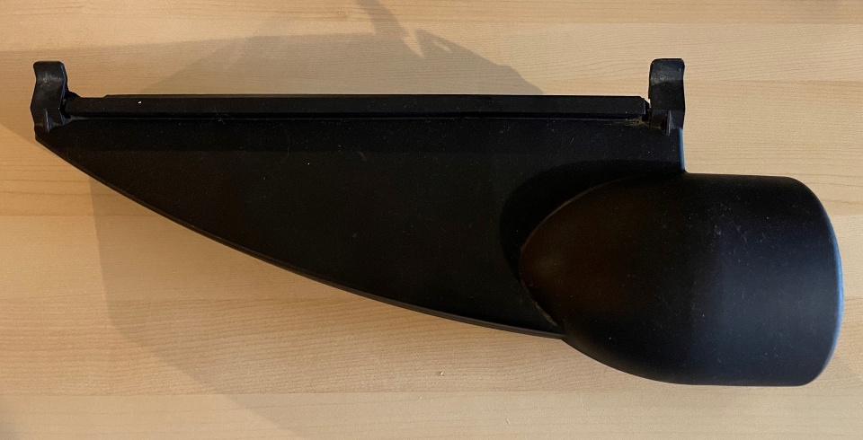 The original dust hood that came with the planer looks like this. It transitions the rectangular opening on the planer to a 4" port on one side.