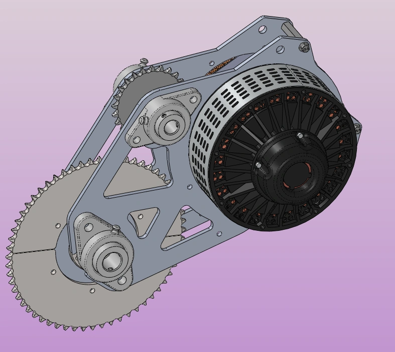 Now, it's time to boot up SOLIDWORKS. Using my measurements and the assembly tools, I drafted up an underslung battery box, as well as a motor mount. I chose to have the motor mount directly tied to the rear shaft. This would allow the mount to maintain the center-to-center distance for the final chain run, and could move if I ever want to add rear suspension. This is where the project sits now. I'll be ordering steel and aluminum soon, and will hopefully be driving shortly after that. I'll keep y'all updated!