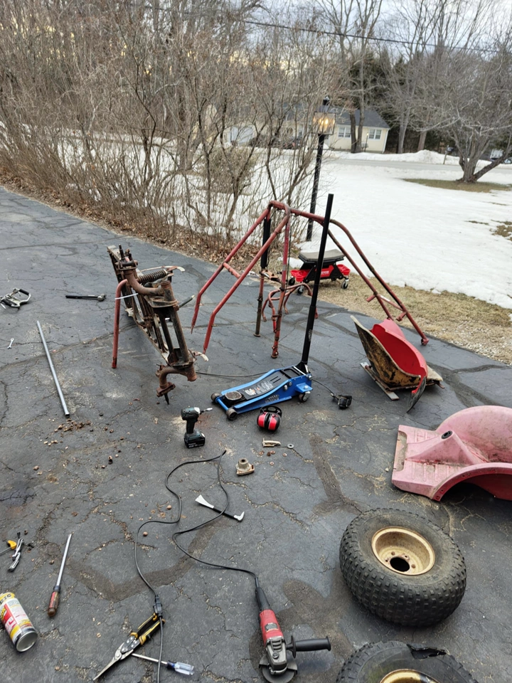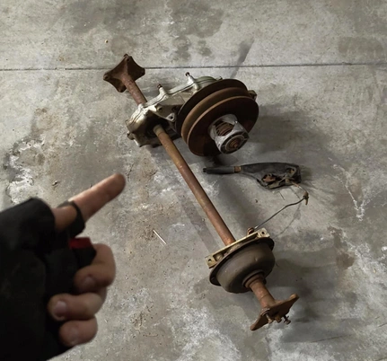 The first order of business would be to make this big lump of 80s iron ready to accept an electric swap. The CVT axle assembly, unfortunately, had to go: it weighed 58 pounds on its own.