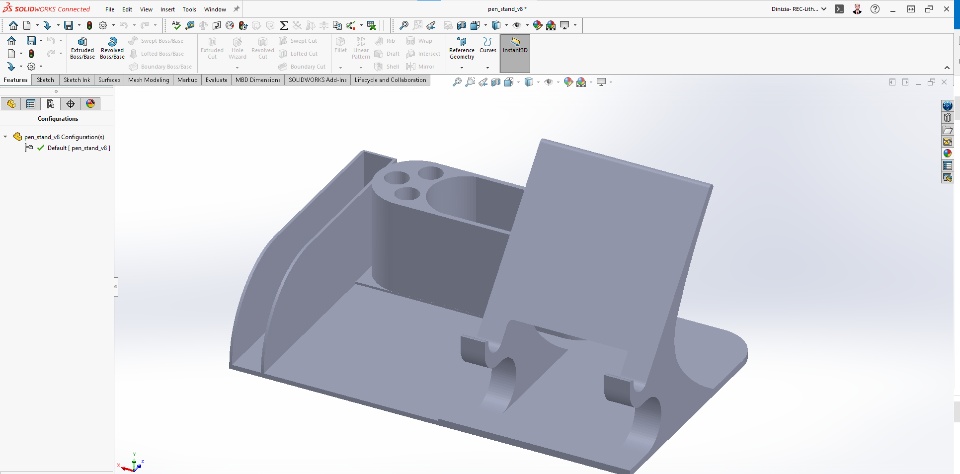 I was just facing difficulties in handling pens, notebook, my phone and few smaller things at the same time which use to end up creating litter on my desk and hence I designed a simple multi utility pen stand having a book sleeve and mobile stand along with it in SOLIDWORKS...and here's how it looks like....