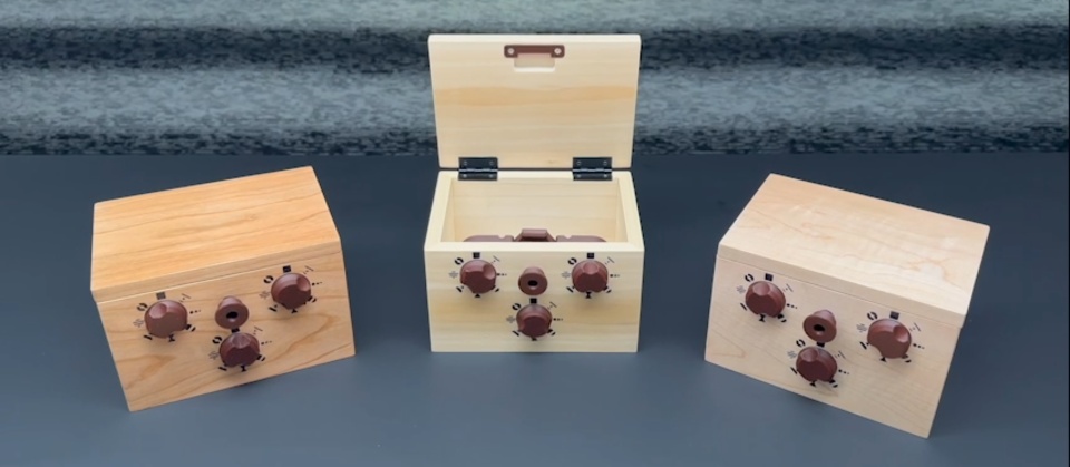 The beauty of this approach is that you can create a brand new 3D model with a new set of puzzles, and change the combination on the physical box to have a whole new experience!