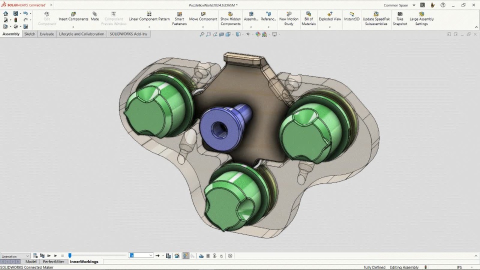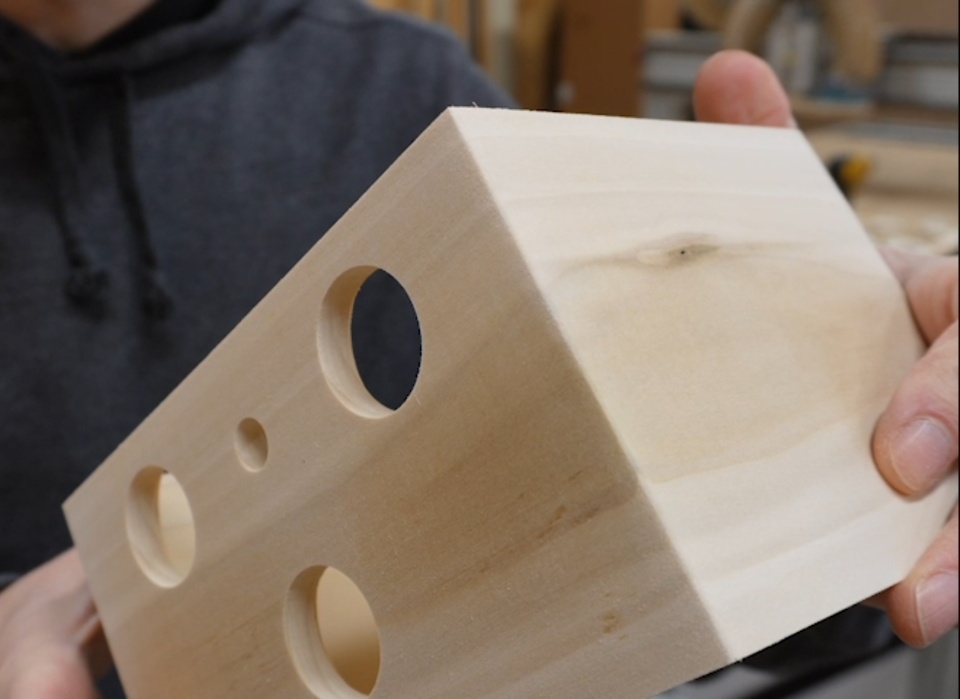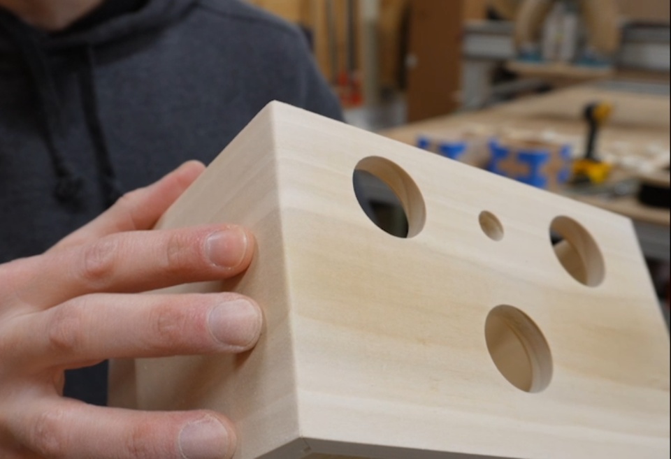 Of course, we started by modeling our idea in SOLIDWORKS for Makers. The box is a fairly traditional design, but we did experiment with a new way to achieve the highly-coveted, continuous-grain corners.