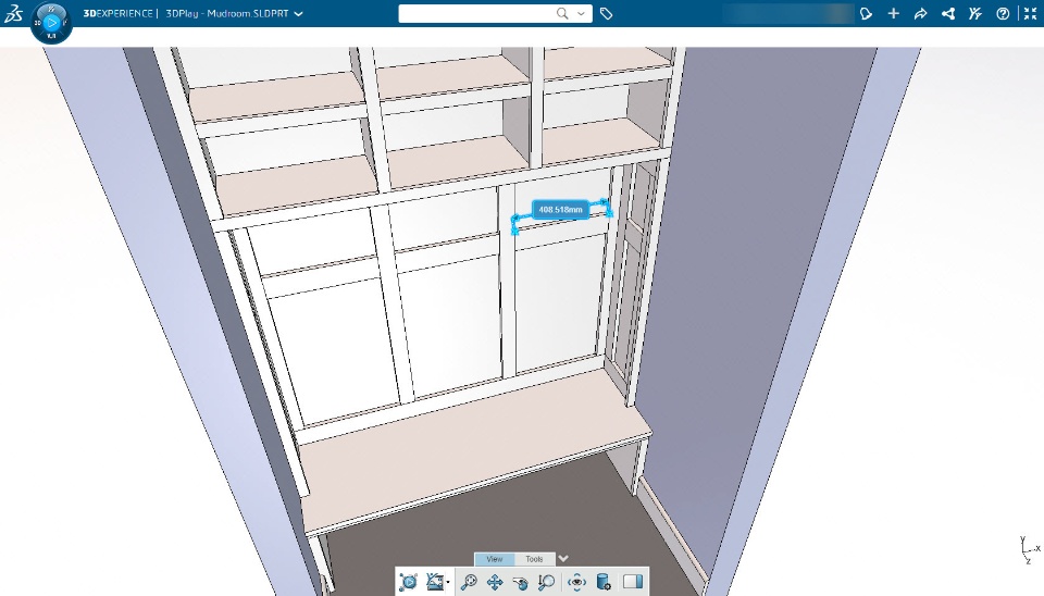 And when it gets time to start cutting, gluing, and nailing things together I no longer need to bring my laptop to the workshop. My model is stored in the 3DEXPERIENCE on the cloud so I can review my design and check some measurements, all this directly on my phone or tablet.