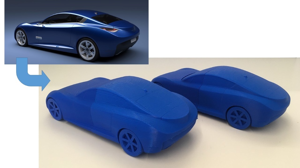 CATIA Design Show Car, Blue Car was printed for SIMULIA's simulation software demo.