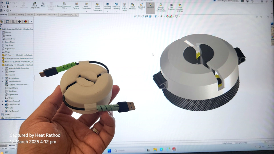 To solve this, I have designed a compact and twist lock cable organizer that: