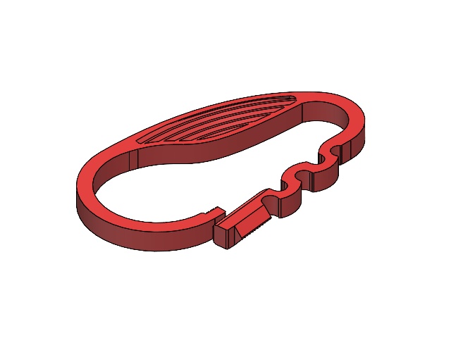 I split the elephant in half so I could more efficiently 3D print it, and added details to help me align the pieces during the glue up. Then I turned my attention to modeling a carabiner-style clasp that our nephew could use to hold the elephant to his backpack. (You can download a copy of the SLDPRT right from the down arrow in the upper right hand corner of this 3DPlay window)