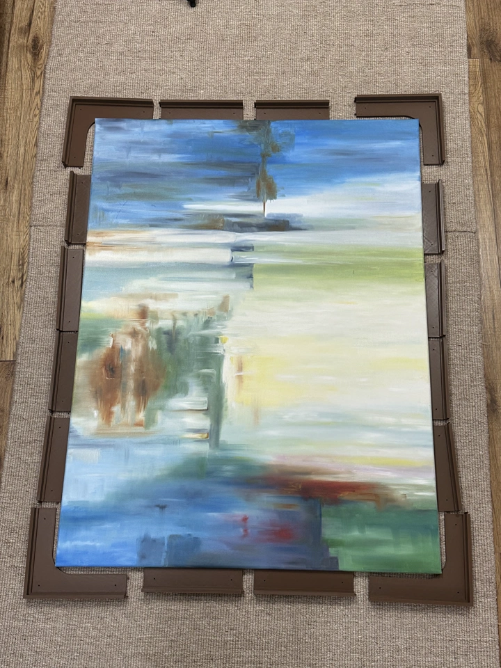 The challenge in designing a floater frame that is much larger than the build plate is designing the fastening solution to seamlessly align the various pieces. The frames being very slim makes concealing the clips even harder.