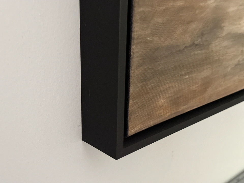 It achieves this by leaving a small gap of ¼" between the frame and the artwork. This gap allows the artwork to be seen in its entirety, without the edges being obscured by the frame, giving the impression that the art is suspended within the frame.