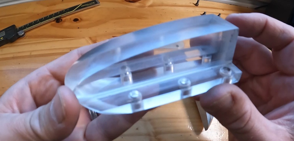 Fun fact: This was the first time I have ever attempted to machine PMMA acrylic and it was surprisingly easy. I carefully sanded all the parts by hand after machining had finished. Starting with 600 grit and finishing with 2,000 grit sand paper I got the finish I wanted. This technique is referred to as wet sanding and it did give me an excellent finish on both the aluminum and acrylic surfaces. Polishing compound, a drill, and some elbow grease later, the acrylic was crystal clear, and the aluminum was mirror like. This task was tedious and took exactly forever and a day to complete… but is was worth it!