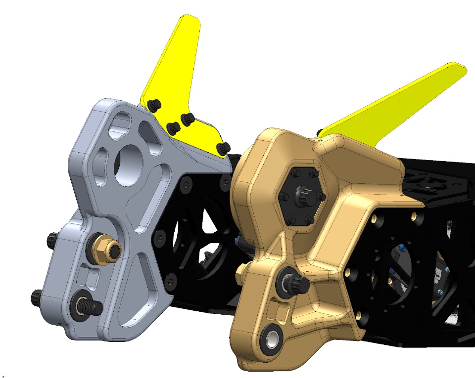 - One final consideration for the Billettes was how exposed they were when we were running forks. With the wedge on, they were pretty much covered; anything getting through that wedge was posing bigger problems. We had to make them significantly thicker than we had previously designed the shaft clamps so they could survive some damage if it happened. We’d shifted the weapon position slightly forward since we didn’t have to depend on chassis geometry to support it anymore, so the sides of the disks were more exposed than ever before.