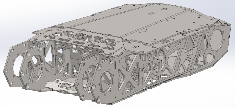 - We had been talking to a potential machining sponsor who wanted to show off their ability to make large, complex parts with lots of internal features. Seemed pretty perfect, we love challenging our machinists with “it works in CAD!” What we liked about S5 was the large module system. The guts of the robot were a single removable unit, good in concept, but required a 4 person operation to install into the robot. We liked that the wedge and weapon system were also independent modules that could be prepped 98% on a bench.