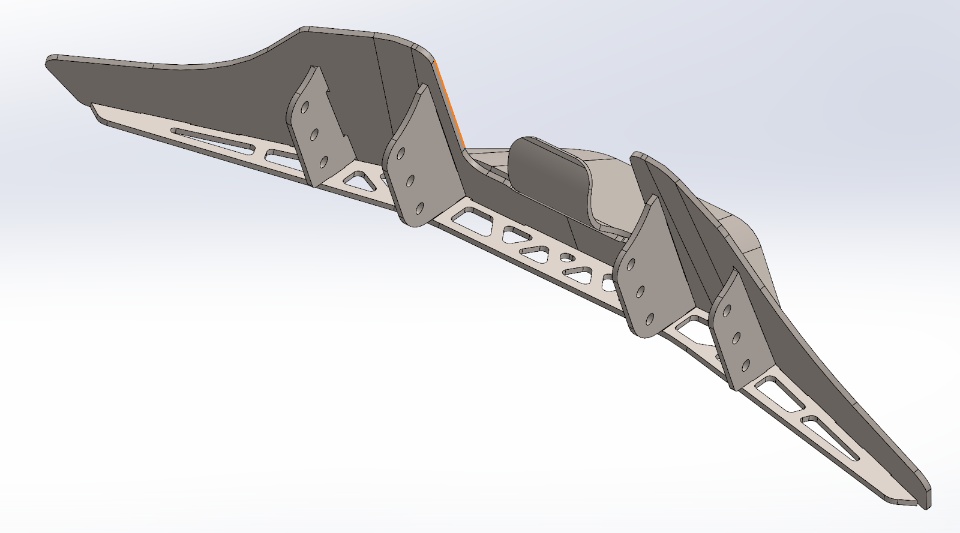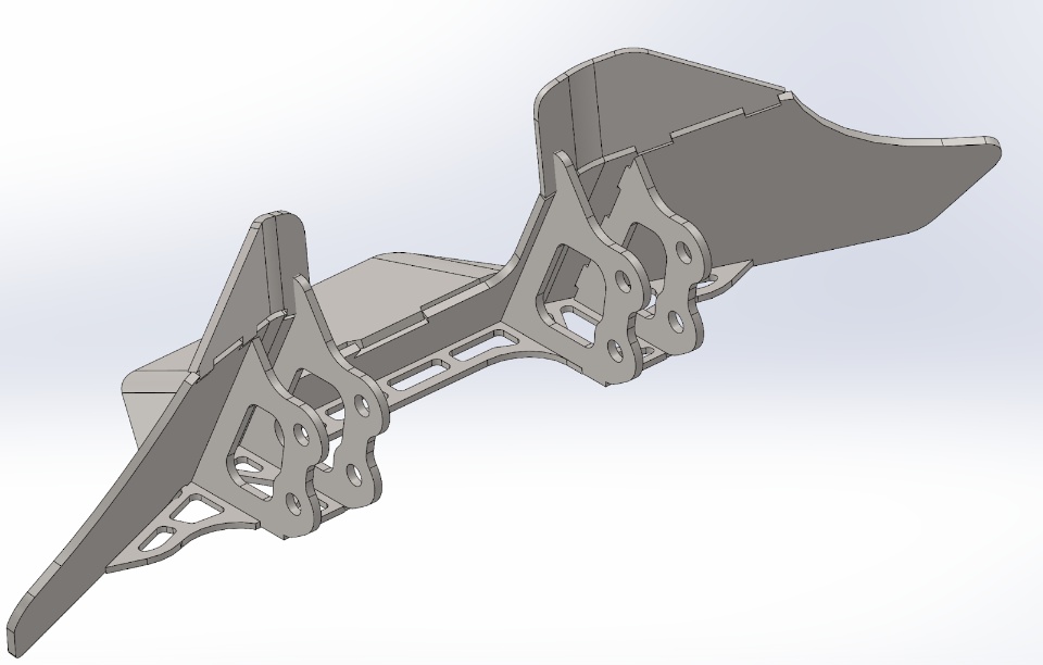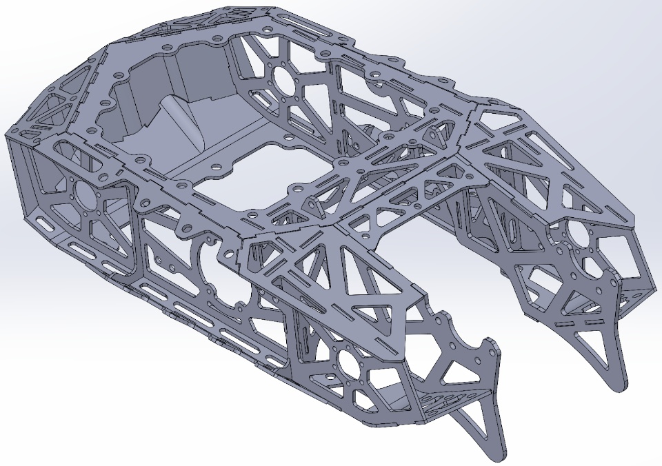 - We started brainstorming this massive front end billet so the entire weapon and wedge assembly could be worked on separately from the rest of the chassis. The idea was we could have 3 or 4 of these ready to go and swap a highly damaged front end out and turn the robot around in half an hour. For better or worse, that company decided they didn’t want to commit resources to a sponsorship, forcing us to revise the front end design intent.