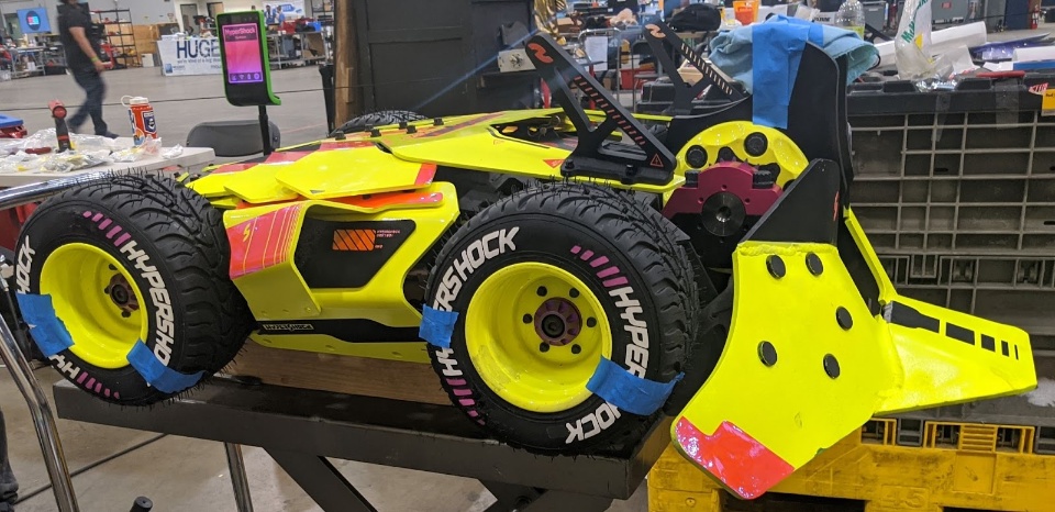 - We hadn’t faced a large horizontal and thus hadn’t needed the full wedge yet, but we were in the ICEWave bounty, so we started prepping it and a chassis for it. The highlight-only fight with Sporkinok is when we realized one of the chassis was ruined, but the other had a wedge poorly attached, so swapping wasn’t an option. 3 teammates spent 2 days exclusively messing with a chassis (one of 3) to make sure we had a wedge+single disc option for ICEWave. For better or worse, we were eliminated before that wedge saw a fight.