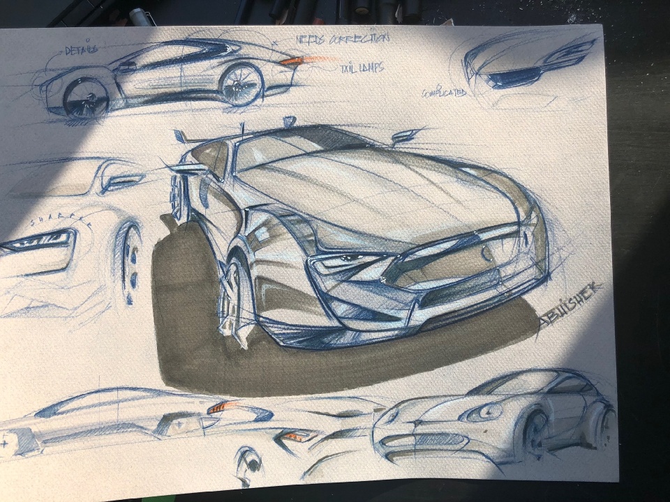 These days I don't get to sketch a lot, though, on occasions, I like to throw some pencil and alcohol markers on paper. BTW, Adrian van Hooydonk (BMW) has been a huge inspiration to me as a desiger.
