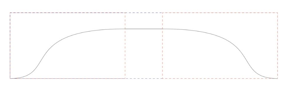 I waned a curved cutout in the walnut panel so that it would not cover too much of the top drawer as discussed above, so I turned to Adobe Illustrator and first drew a rectangle at the same size as the walnut divider. Then I drew a spline from one corner of the rectangle in towards the middle at approx. 2 inches from the longer glue edge of the piece. I only have a small letter size printer at home so I made sure I could print the template out of 3 pieces of paper and then tape them together.