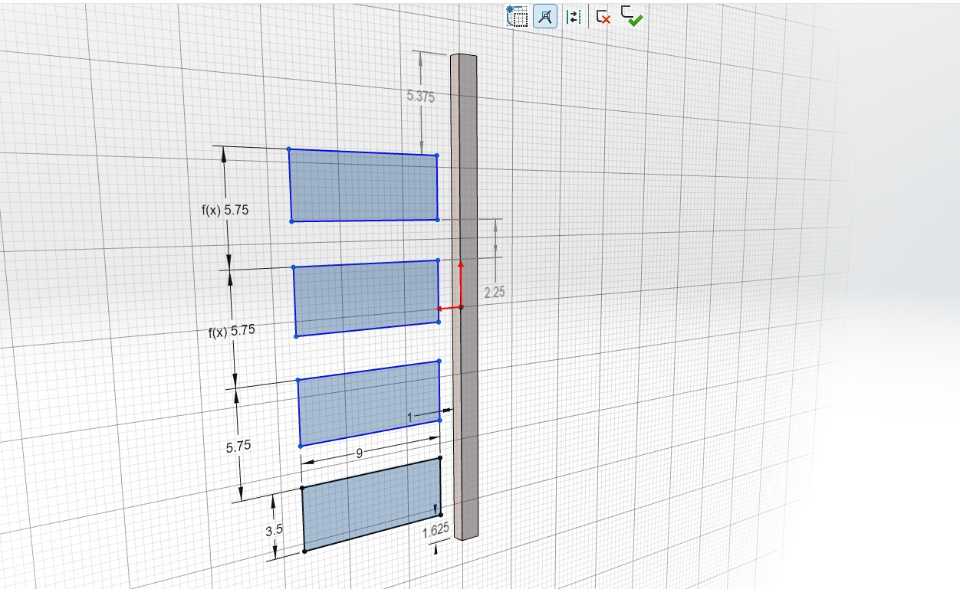 No better way to figure out the spacing than to turn to xDesign. Instead of opening the whole assembly I previously created to start this project, I thought it would be faster to just model something quick knowing the real world dimensions that I am dealing with here in front of me.