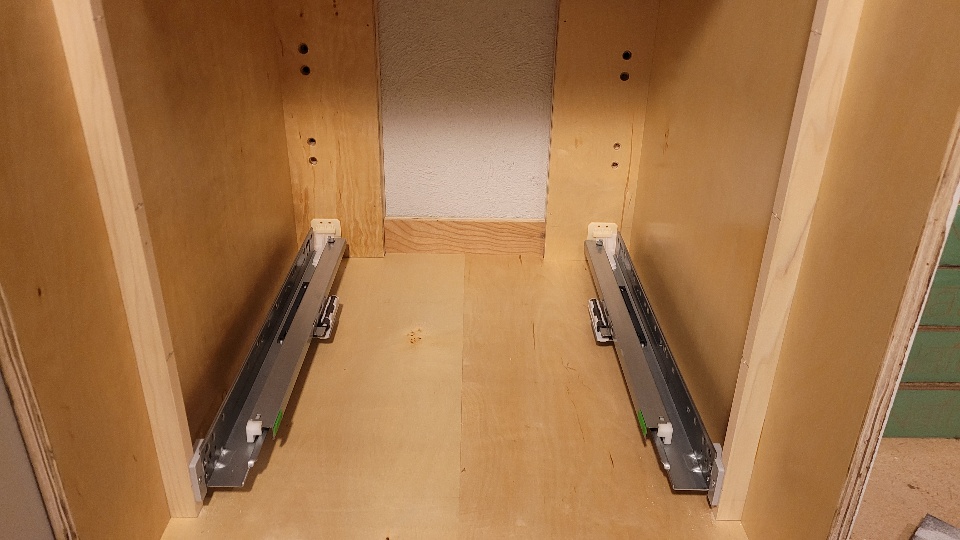 I then took one of the drawer glides and set it in place on top of another piece of 3/4" plywood as to leave clearance under the bottom most drawer. Having this fixed position for the bottom drawer will help me layout the others above it.
