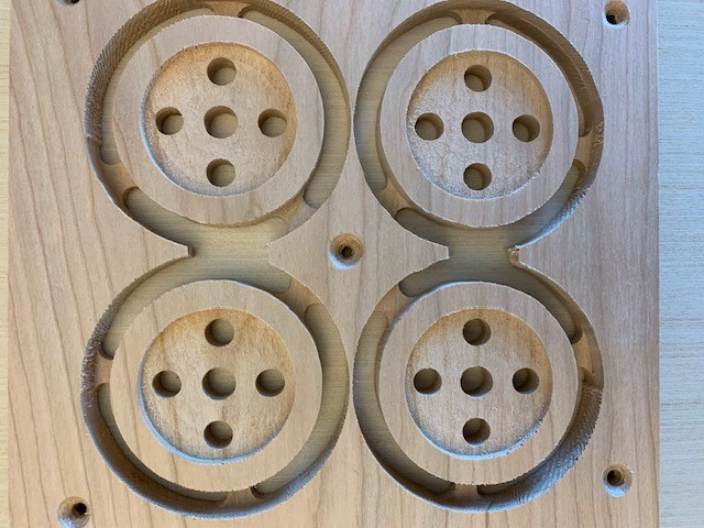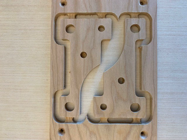 The first step in creating the toy cannon was to CNC all of the wood components. First, the cannon sides were cut from one-quarter inch cherry wood. Next, the wheels were cut form three-eighths inch cherry. Wood dowels were used as the axis for the wheels as well as the cannon support structure.
