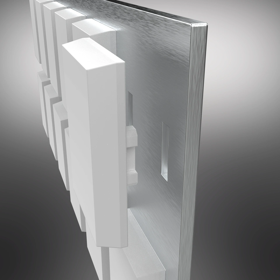 For these badges particularly the 6x2 badge there are 12 lenses, and each lense requires cutting on both sides before it can be bonded to the base plate, meaning thats 24 cut operations, which by hand with a stanley cutter alone would be incredibly time consuming but also we designed in 1.5mm of protrusion so it could locate into the base plate, meaning every single badge is repeatible & perfectly aligned, it also means we could build stock for all the variants and store the lenses to be added after and we can leaverage the power or batch production as somone making badge bases for 6 hours is more efficient than making them one by one.