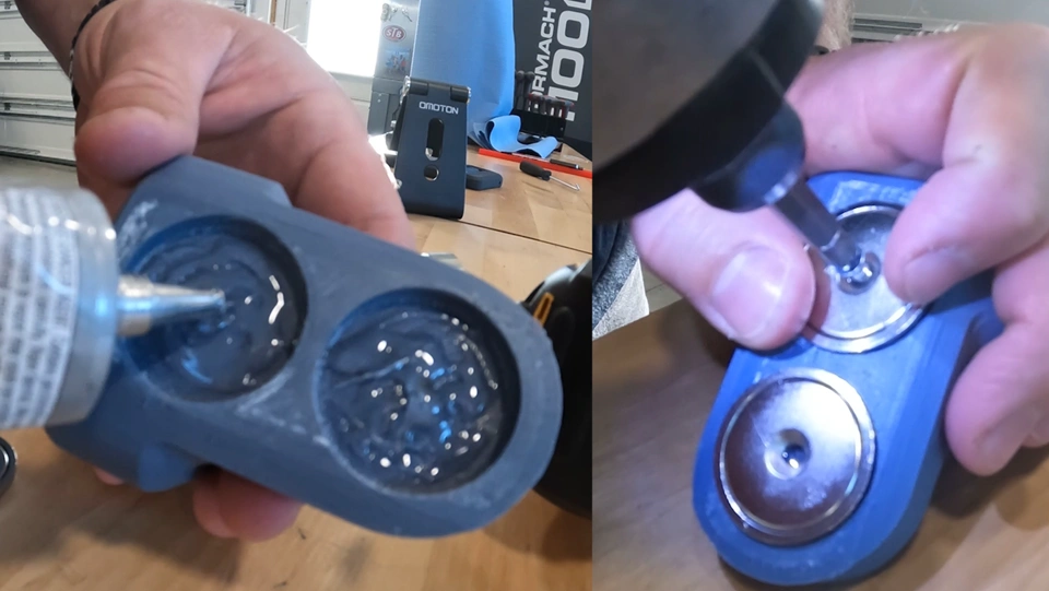 I attached high-strength magnets to the back of the holster using glue and non-magnetic screws. The magnets allow the holster to snap securely onto the front of my CNC mill—no drilling required!