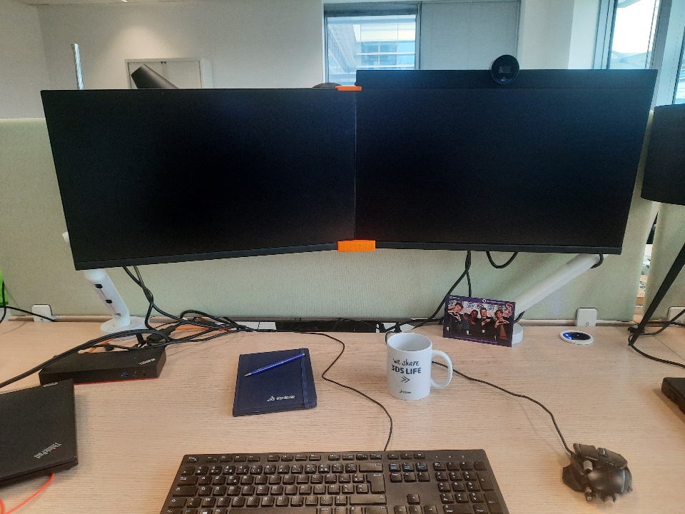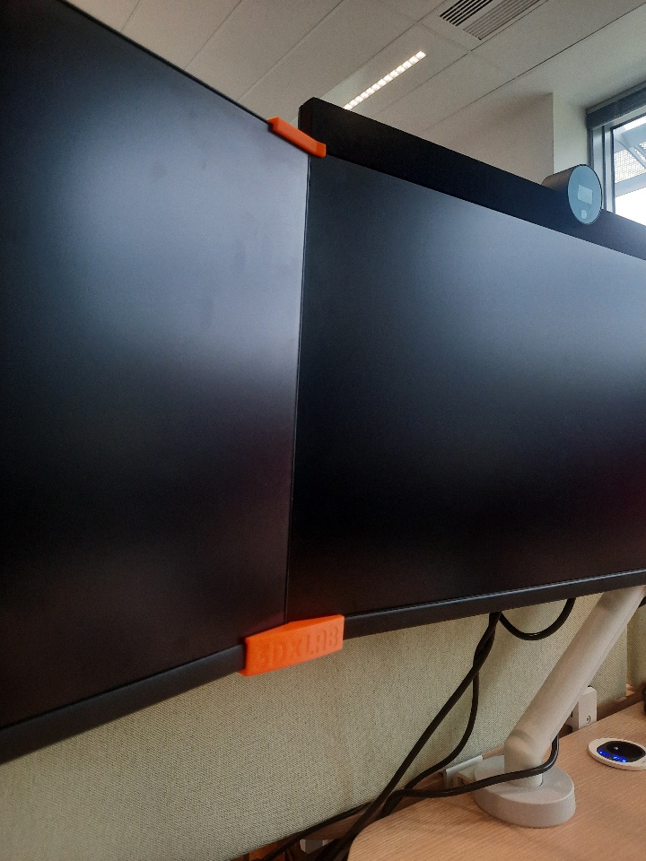 After 2 weeks in 3DExperienceLab as intern 🖐, and 1 week in the brand-new offices in BOIS🌴building, I designed these 3D printed parts to get rid of approximate edge to edge monitors.