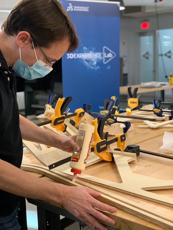 The team just glued up of the frame today for our third build. It's for PrincessFreyja in the 3DEXPERIENCELAb Boston. Read more about the earlier builds by Dassault Systemes SOLIDWORKS Team here