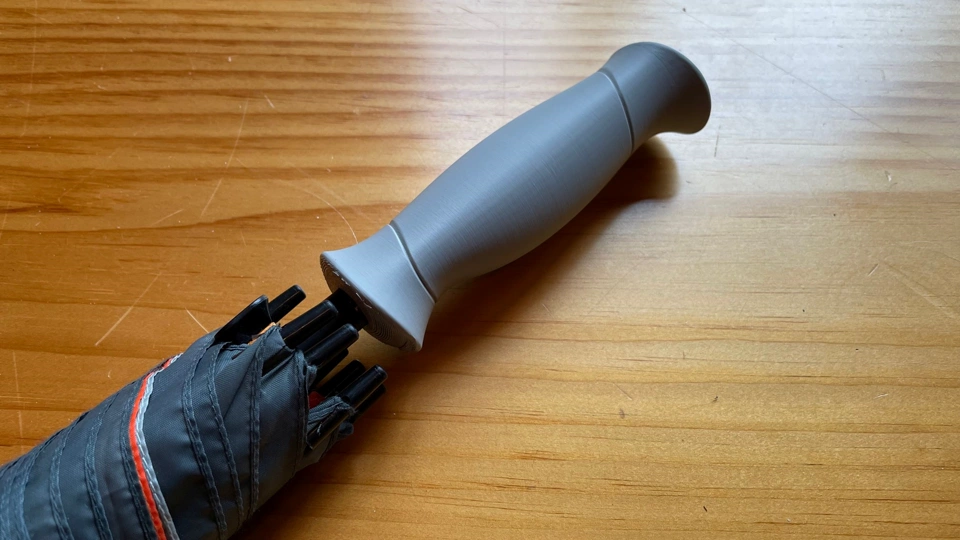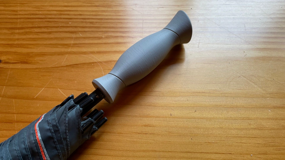 I printed both handles so I could compare how they looked and felt when attached to the umbrella. What do you think? Which design do you like better?