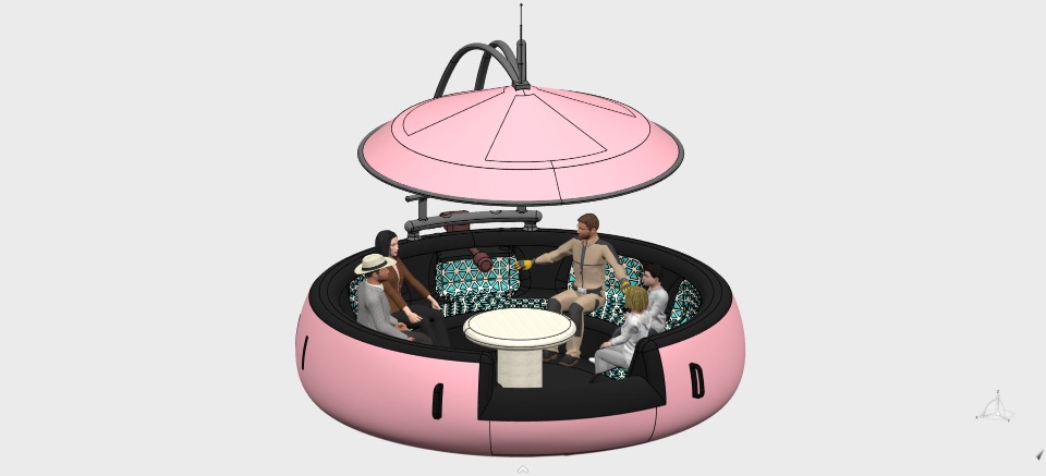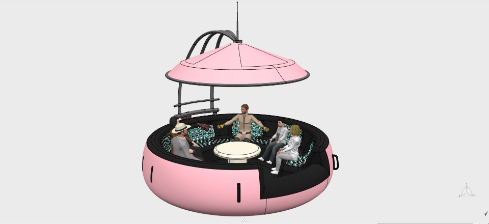 The Newt Mini Family Floating Ship is a compact, stylish watercraft designed for summer fun. It's built to accommodate a small group of people, featuring comfortable seating and a sunshade to provide relief from the sun. With its vibrant colors and durable material, it's perfect for leisurely floating down calm rivers or lounging on serene lakes.
