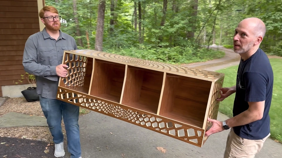 The last thing we had to do was mount the hinges for the speaker stand doors and then transport the pieces to Andy’s house. They look great in their new home!