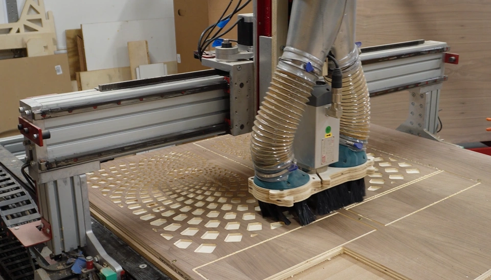 Once the design was finished, we cut all of the intricate details out with a CNC router.