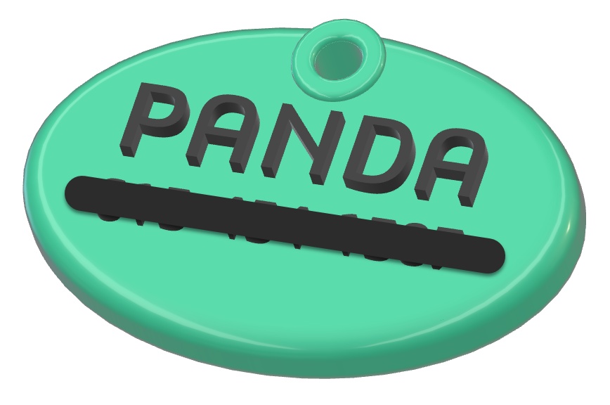 ...so I fired up the computer and... 5-10 minutes in xDesign, 2-3 minutes in the slicer, 22 minutes on the 3D Printer (2 colors) and done! Panda is ready to meet the world!! (I edited out the phone number in the images, but the printer handled the 1/8" numbers perfectly)