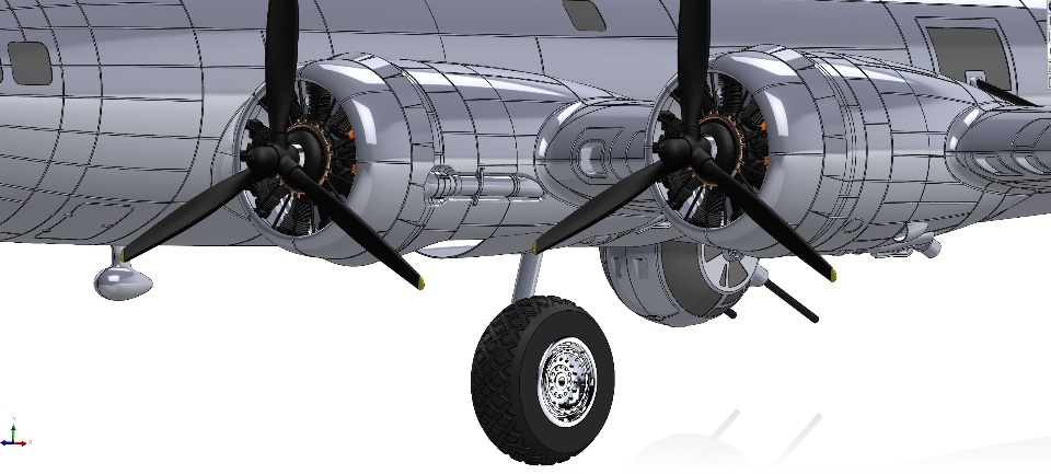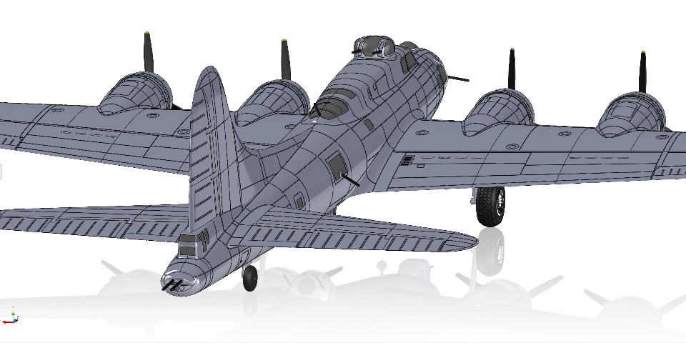 I have the SOLIDWORKS model of the B-17 Flying Fortress competed! I tried to add as much scale detail as possible and I am very happy with where it ended up. This will be a fully functional R/C aircraft with all of the components 3D printed. This is modeled to 1/15th scale so it has an 83" wingspan and the flying weight should be around 5000 grams. I have most of the parts printed already so I will keep everyone posted on the build and test flights.