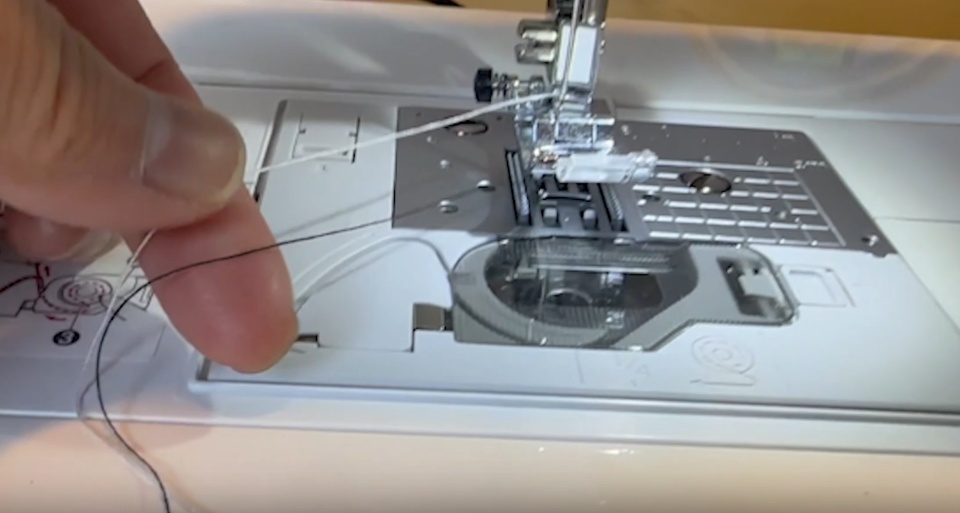 We used a light colored thread in the spool and a dark thread in the bobbin so that each could blend nicely with their respective side of the fabric.