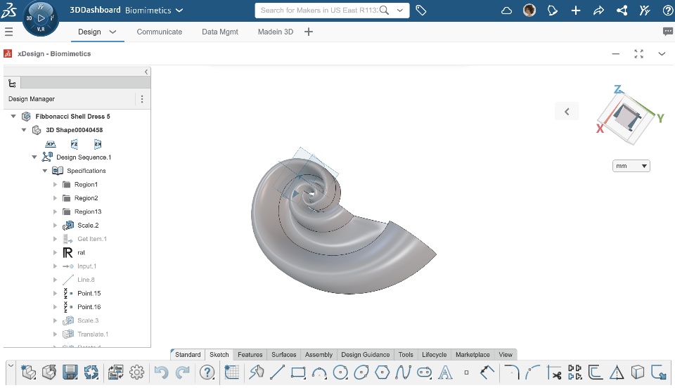 The Shell Dress was designed on the 3DExperience Platform, and made with love in the 3DExperience Lab in Waltham, MA, USA. This project continues to evolve. Follow along at www.biomimetic.io
