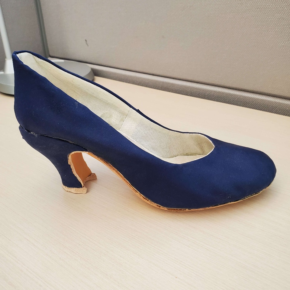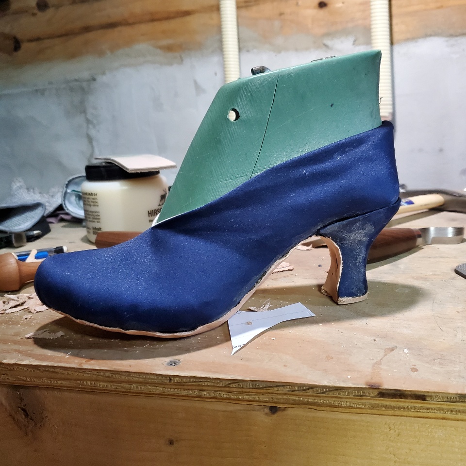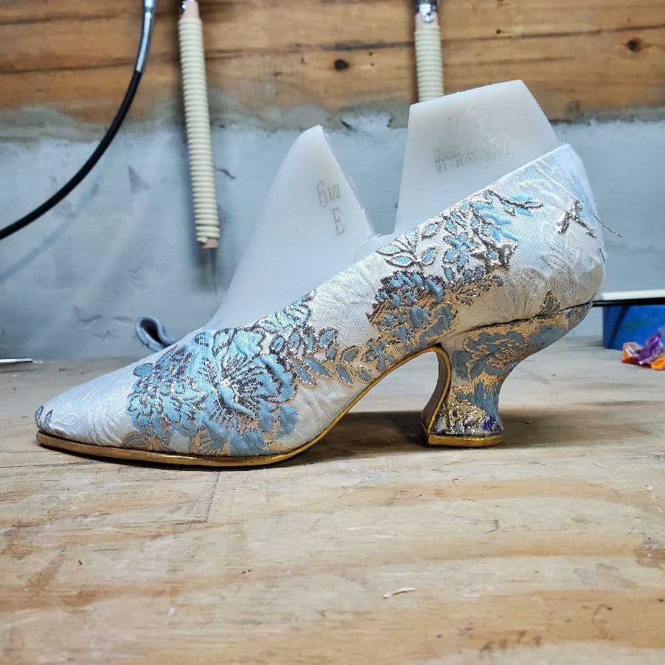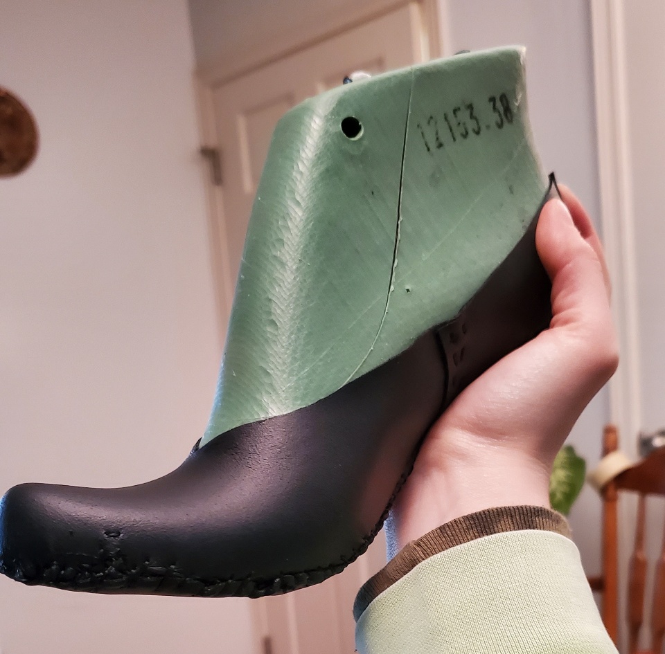 And yep, so since March, I've been teaching myself how to make shoes. And that's been quite the process I've done four individual practice shoes, I haven't made a pair yet. Because why make a pair when I know it's no good and I won't use it? So I've just been making different individual shoes and improving on my technique and my process and materials every time she asked. Now, I'm starting to bring in the CAD element. So I saw to make shoes, you need something called a "last." And that is the form of your shoe in the size of your foot. And so I wanted a shoe that has like maybe a 2, 2 1/2" heel with a nice pointed toe. And I have this it was based off of an older design from like a 1916 last. And I made my practice shoe and it looked perfect. But when I put it on, it was too big. And so this is actually the fourth last I purchased because every single one of them has been too big for different reasons.