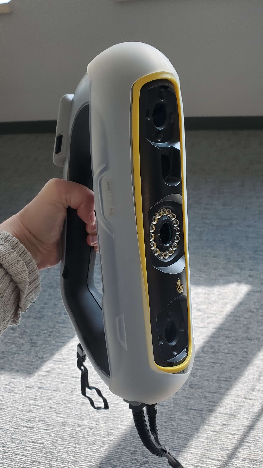 So it took me many attempts to get down to the proper size and this is where I said "Okay, I don't want to buy anymore shoe last, this is getting expensive, and I don't want to buy more." And the place I bought this one from the woman selling it, she only opens her store twice a year because she doesn't have a warehouse (side note - she's actually closed her supply store for good as of December 2023). It's just her and her house. So she takes pre-orders and then ships them out to everybody. So I knew, "Okay, well, I can just wait until the next time she opens it in like February. Or I could try to fix this...maybe?" So I ran through a bunch of different ideas. I'm like, "Well, what if I shaved down the toe? But then I might lose the toe shape and I don't, I don't want to. Well, what if I shave it down from the heel, then I can keep the toe shape....but then the arch is going to be in the wrong spot for like the length of my foot" and like, "Oh, these are all weird. What if I make a mold of it? And then I fill it was something...?" But that I couldn't figure out okay, well, if I make a mold of it, what plastic do I use? Can I even get that in a format that I can melt down? And so finally, I heard from @SF in the lab in the Waltham office. He goes, "Hey, you know, we got a new 3D scanner." A scanner??? Hang on now.