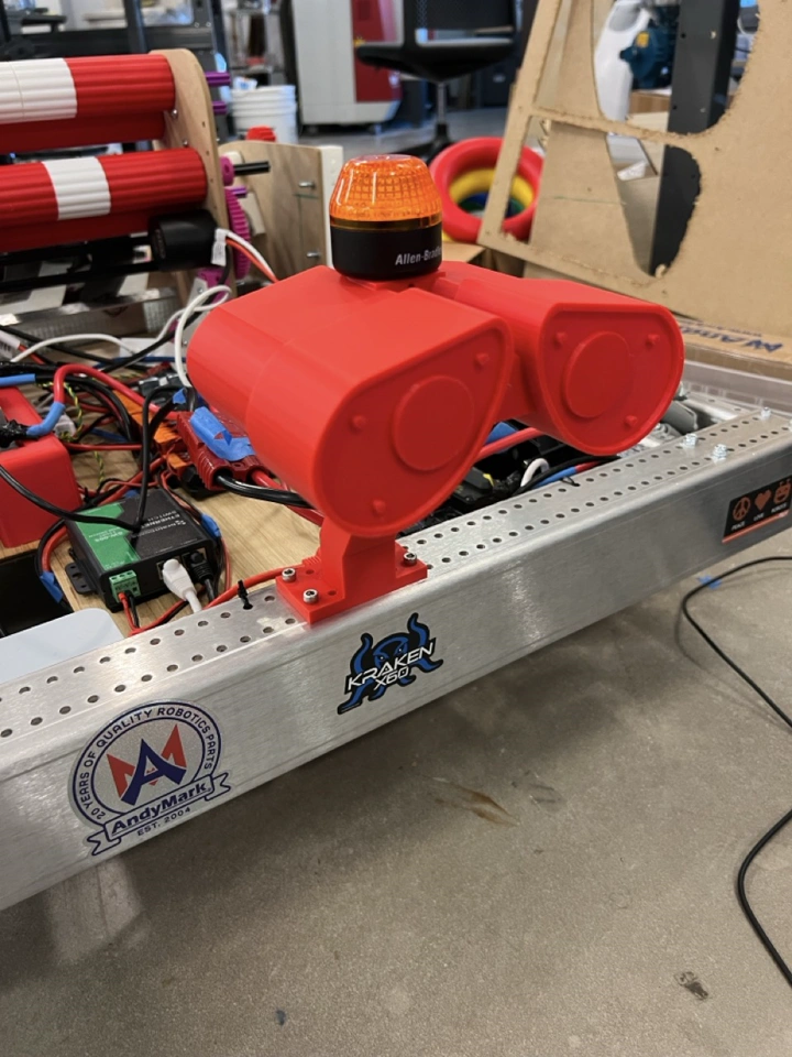 After naming our robot Wall-E @SM designed and 3D printed this light mount to add some personality to our design.