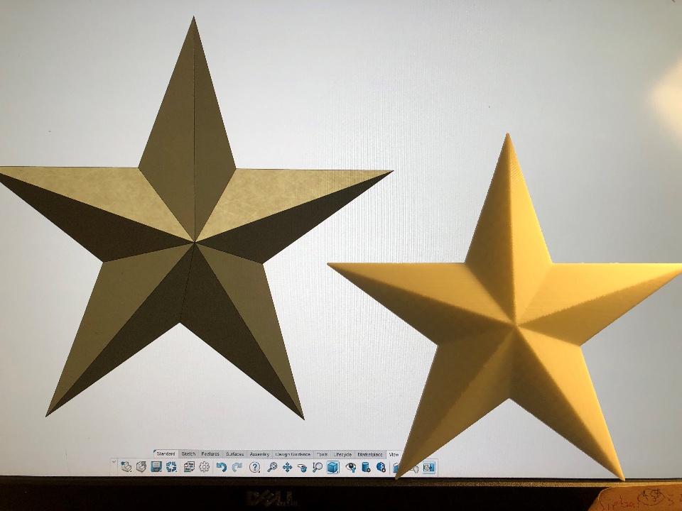 or us. Looking at the the topper on our Christmas tree the shape looked very basic. I fired up xDesign and gave it a go. The shape ended up even simpler than I expected to model. The back is flat to attach to the wall, but I may mirror it over and make some hanging ornaments as well.